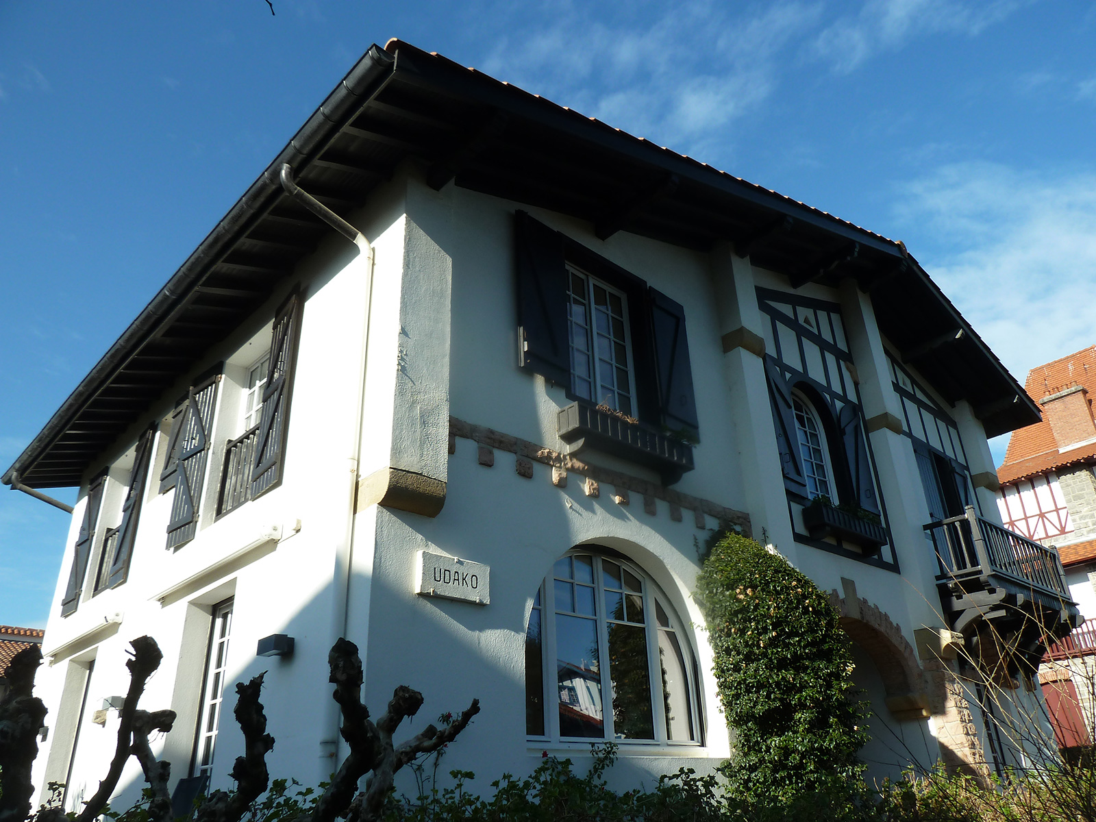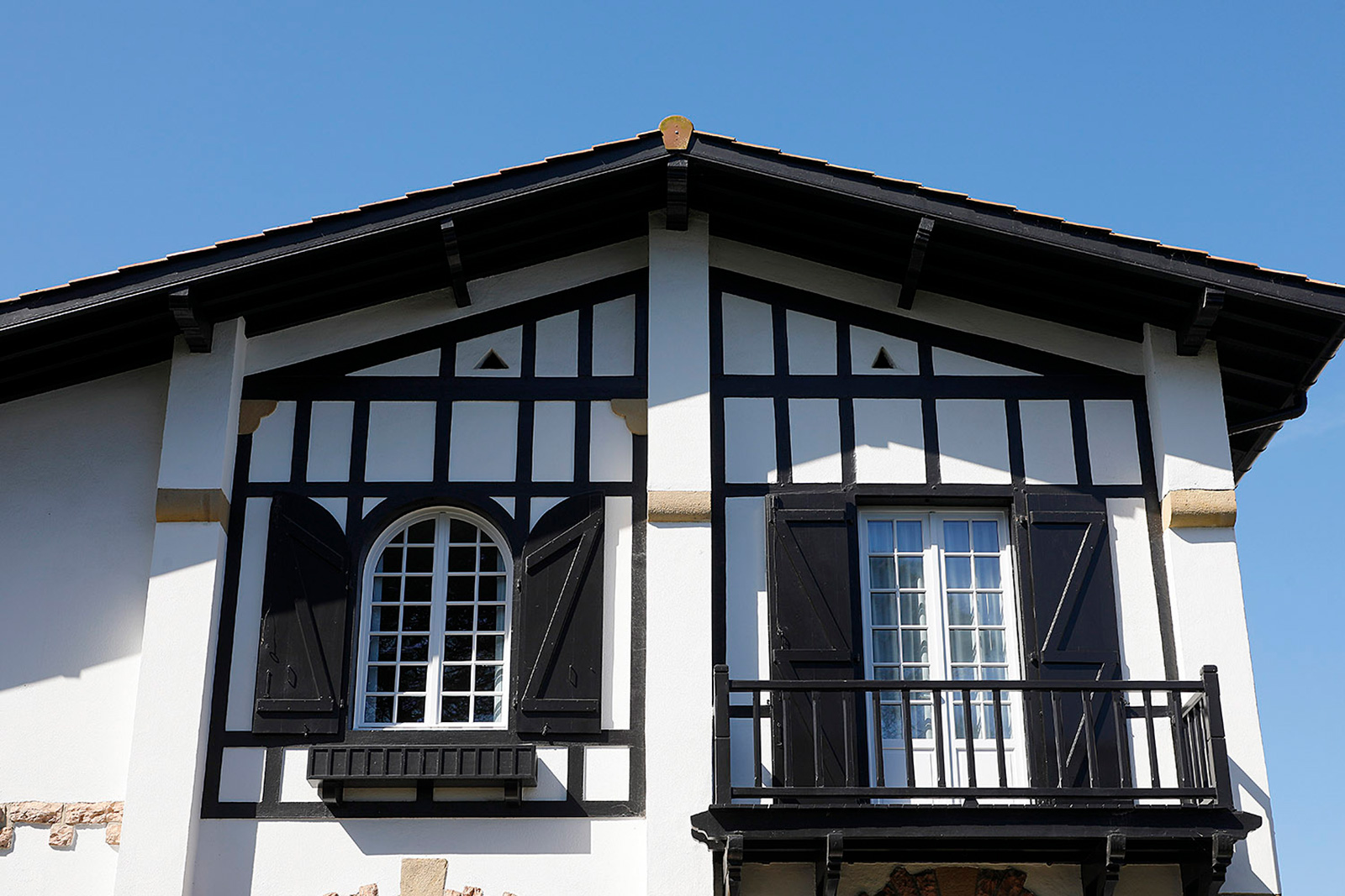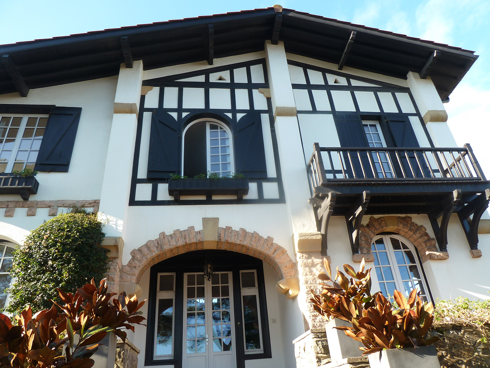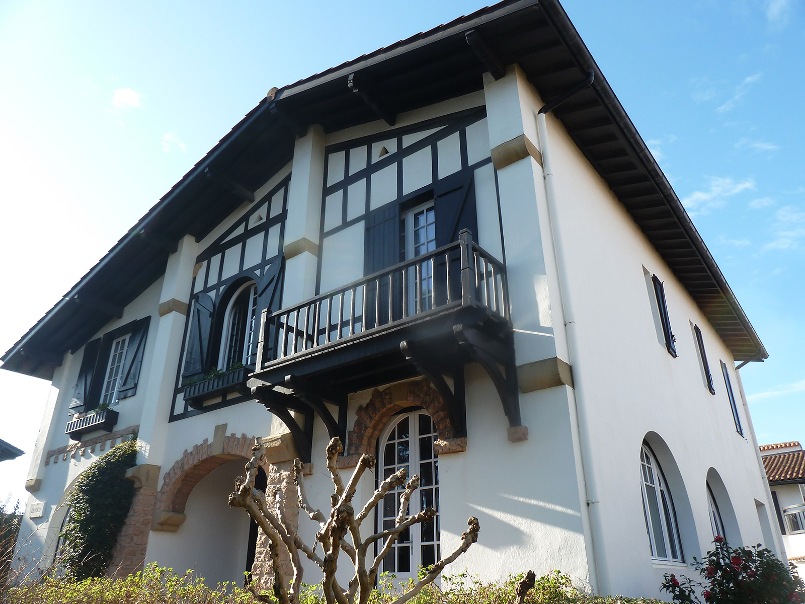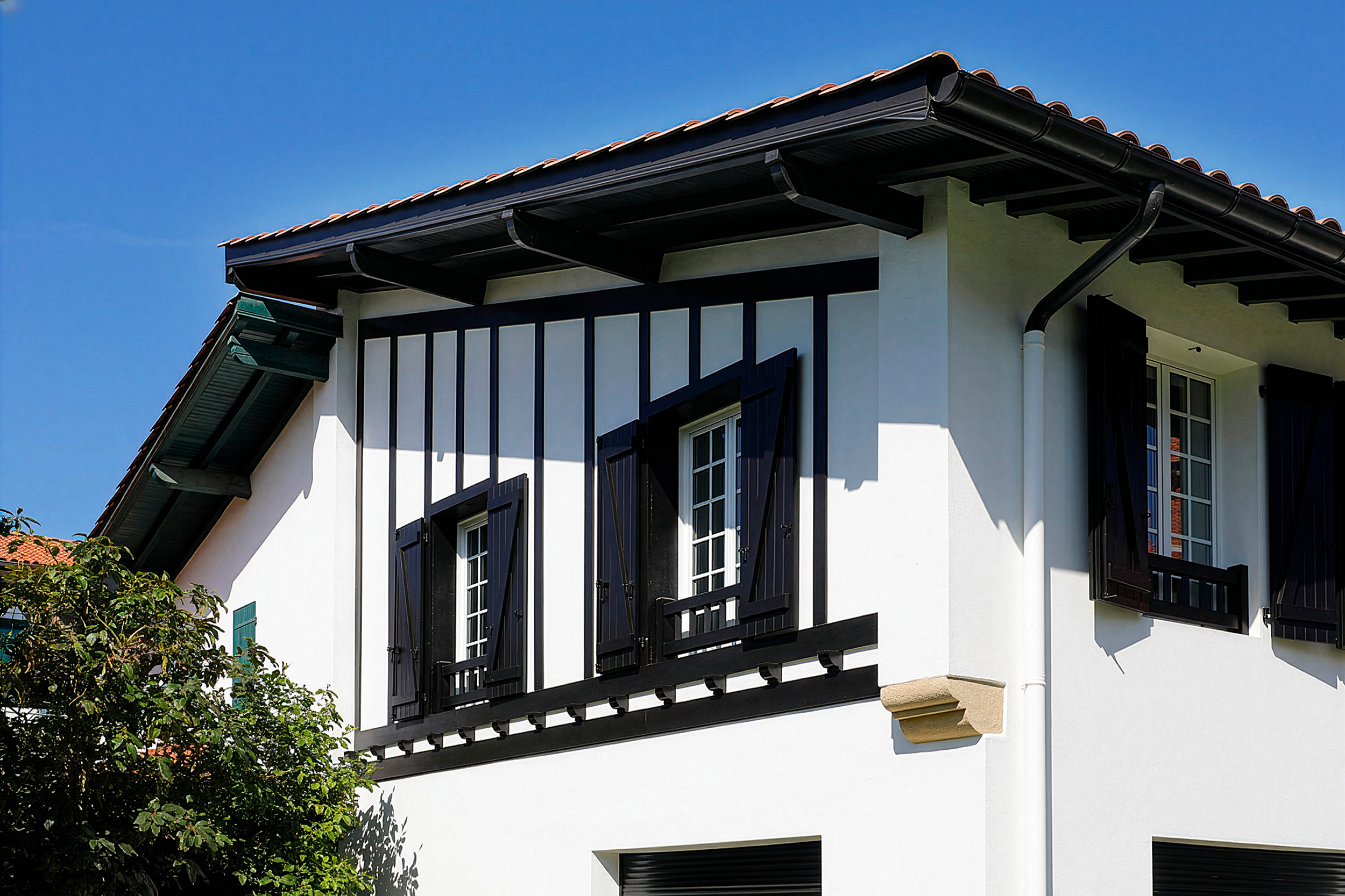 Maison individuelle située à Hendaye, Rue Muriers, en deuxième ligne de plage. La façade présentait des boiseries usées, des éléments métalliques oxydés et des murs nécessitant une protection adaptée dans un environnement marin exigeant.