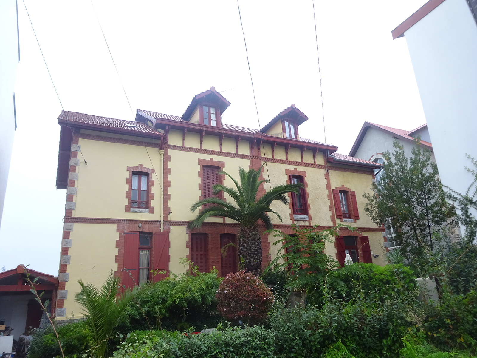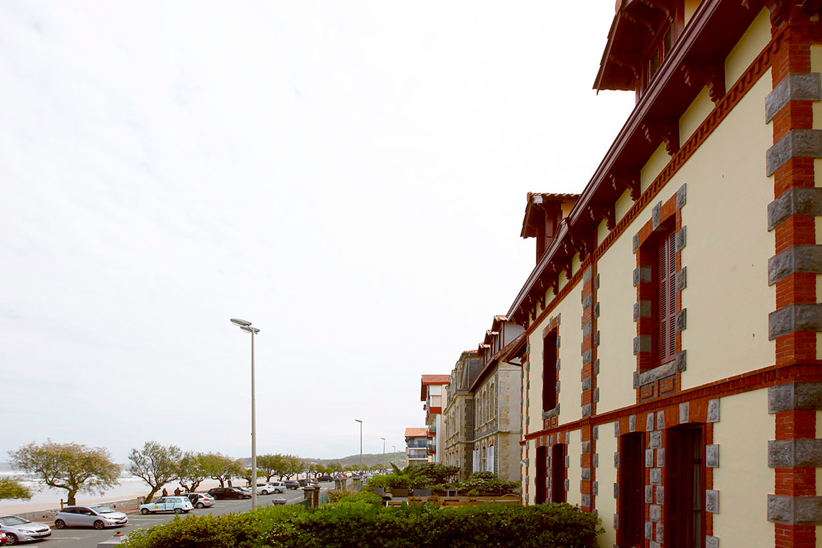 Villa bifamiliar situada en primera línea de mar en Hendaya, que presentaba múltiples patologías: fachadas deterioradas, carpinterías envejecidas y necesidad de mejorar su protección frente al ambiente marino.
